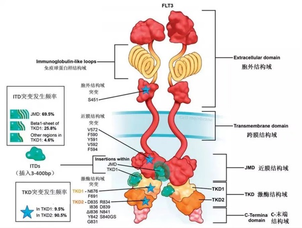 综上,FLT3分子的生理活化经历四种状态变化(图7A)[5]: