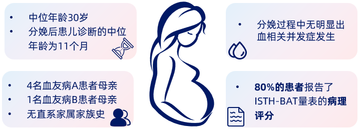 一项来自西班牙的研究对5例女性血友病患者或携带者进行调研,受试者均在生产后孩子确诊为血友病后才明确自身诊断,回顾女性血友病或携带者在确诊前的出血表现。结果显示尽管这些受试者未出现产科并发症,但大部分患者仍报告了出血表现,使得生活质量受到影响[4]。