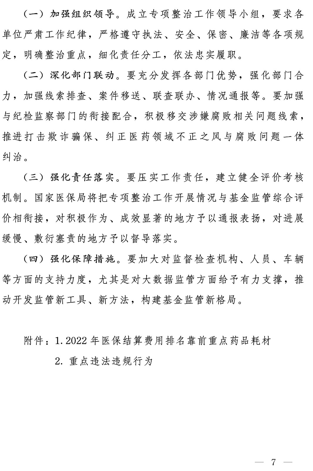 更加聚焦整治重点。《方案》要求严格按照《医疗保障基金使用监督管理条例》规定,坚持问题导向,聚焦党中央、国务院高度重视的重大问题,人民群众反映强烈的突出问题,对“假病人”“假病情”“假票据”等欺诈骗保行为进行重点打击。具体从三个方面着力:一是聚焦骨科、血液净化、心血管内科、检查、检验、康复理疗等重点领域。二是聚焦医保结算费用排名靠前的重点药品、耗材,对其基金使用情况予以监测,对其他出现异常增长的药品、耗材等,也予以重点关注。三是聚焦虚假就医、医保药品倒卖等重点行为。对异地就医、门诊统筹政策实施后的易发高发违法违规行为,也专门提出工作要求。五部门将对各类整治重点加强统筹指导,制定分领域检查指南,梳理重点违法违规行为清单供地方参考执行。