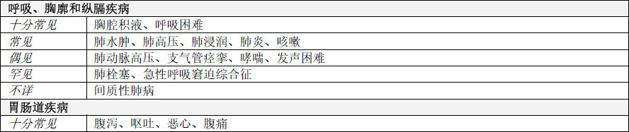 在本品临床研究及上市后的患者中报告了下列不良反应(实验室检查结果异常除外)(见表2)。按系统器官分类和发生率列出了以下反应。频率的定义如下:十分常见(≥1/10);常见(≥1/100至<1/10);偶见(≥1/1,000至<1/100);罕见(≥1/10,000至<1/1,000);不详(不能利用现有上市后数据估计)。在每个频率组内,不良反应按严重程度递减的顺序列出。